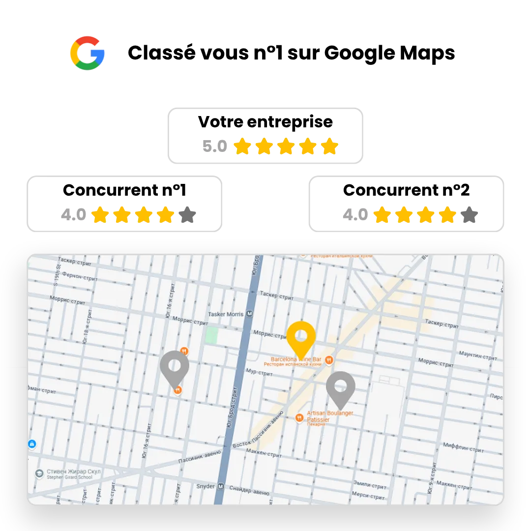 Les avis Google améliorent votre réputation en ligne, augmentent votre visibilité dans les résultats de recherche, renforcent la confiance avec les clients potentiels et contribuent à générer plus de trafic et de ventes pour votre entreprise.