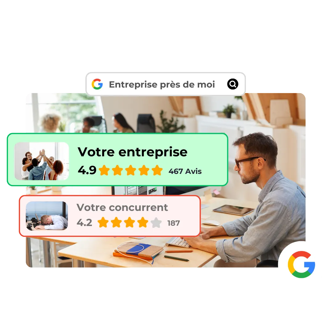 Nos outils d'avis Google transforment vos clients satisfaits en ambassadeurs pour vous démarquer de la concurrence.